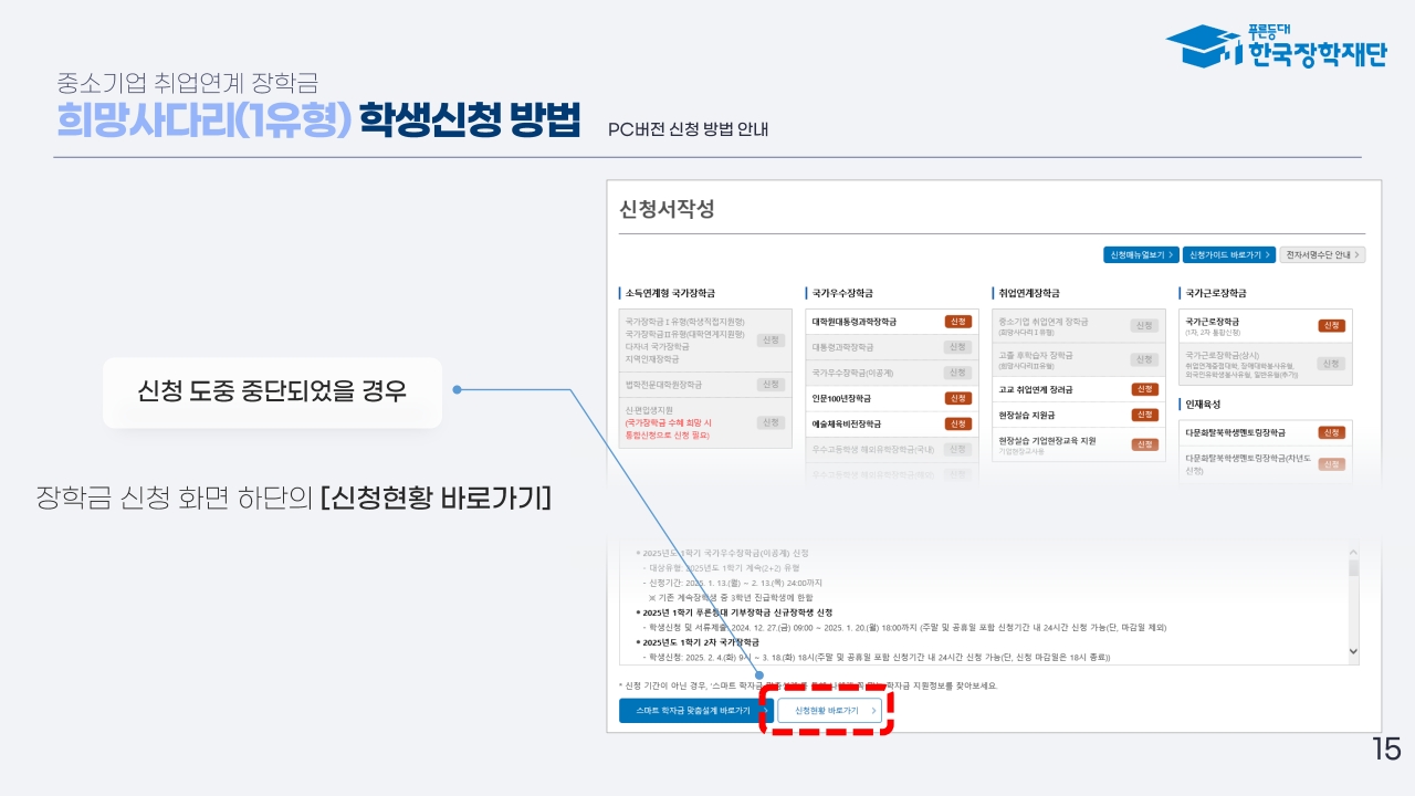 - 희망사다리Ⅰ유형 장학금 신청 페이지 이동