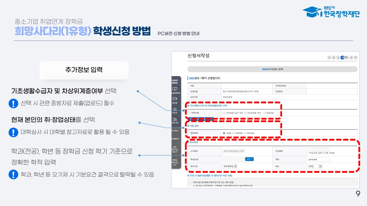📌 신청 대상이 아니거나, 보증보험 가입이 거부될 경우 장학금 수혜가 어려울 수 있습니다.